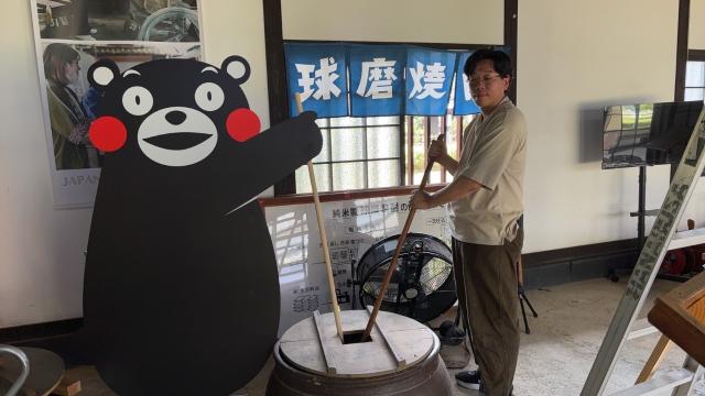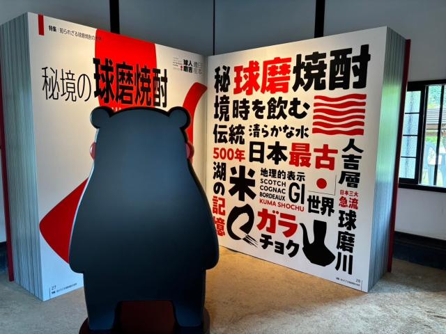 また、敷地内にある「焼酎館」では、人吉球磨の銘酒球磨焼酎の製造工程を学ぶことができます。2025年8月にリニューアルし、くまモンとのPHOTOスポットも設置。まるでくまモンと一緒に本を読んで、球磨焼酎について学んでいる、そんなワンシーンをカメラにおさめてみませんか。その他、会場内には様々なくまモンのパネルがあります。