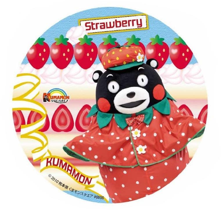 「イチゴモン」衣装のくまモンとイチゴショートケーキがかわいい缶マグネットです。