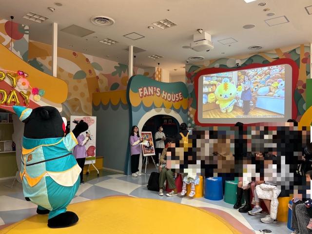 イベント開始時間の11時30分、満員のお客さんの歓声を浴びながら、くまモンスクエアオリジナルの特別衣装『ファンタモン』衣装を着用したくまモンが登場です。
